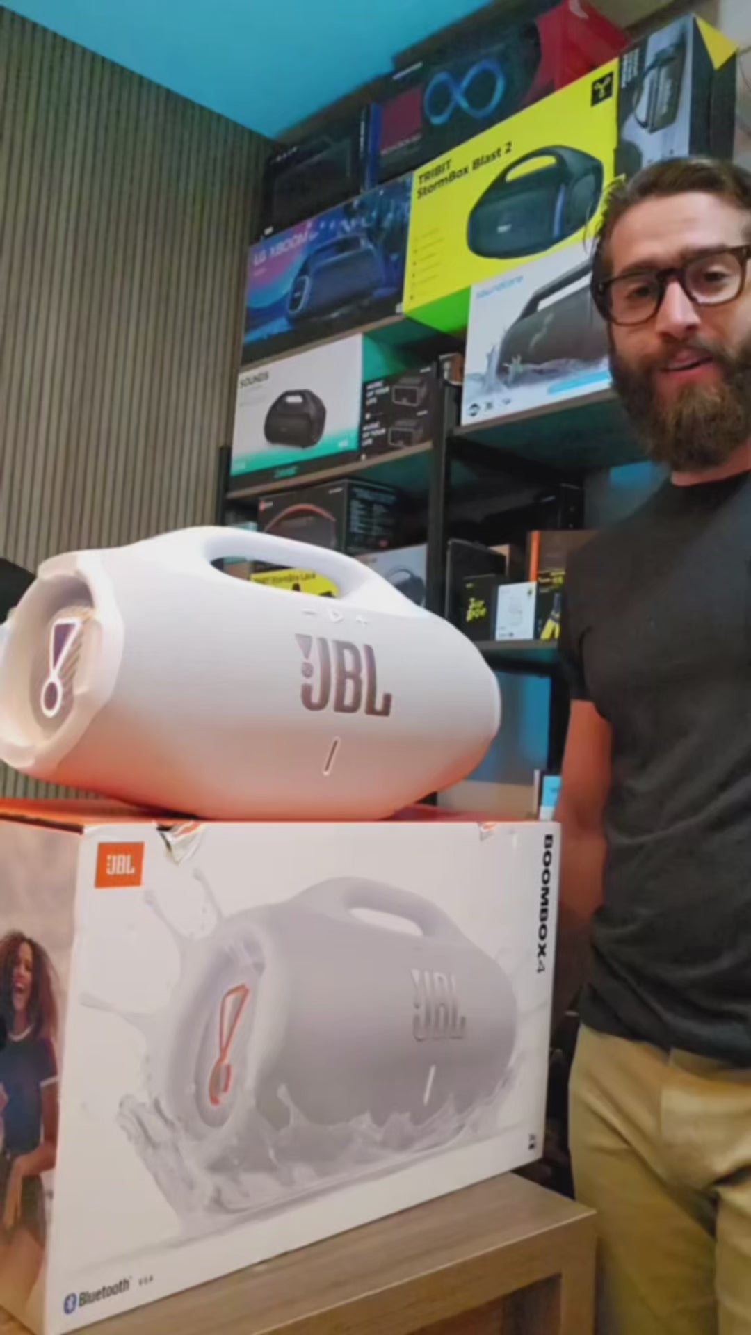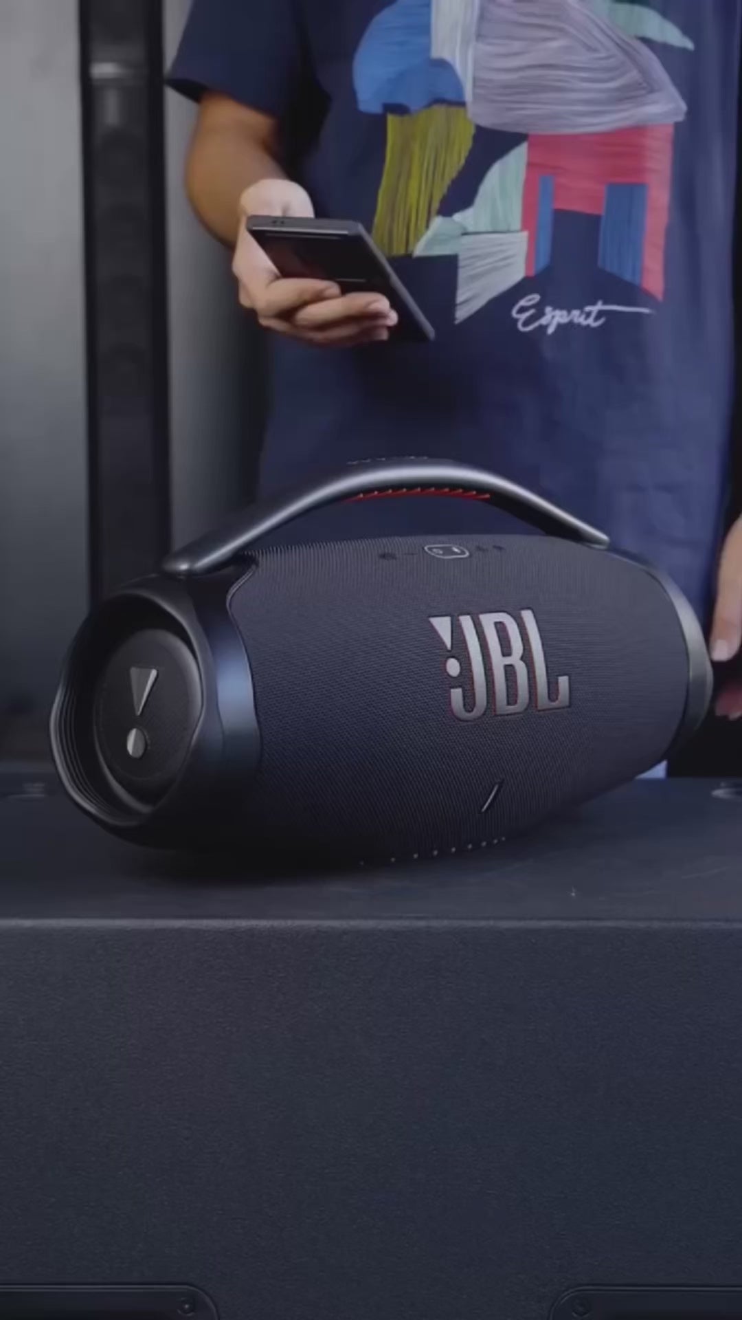 Hemos mejorado aún más nuestro altavoz Bluetooth portátil más potente. La icónica silueta del JBL Boombox 4 presenta una nueva y atrevida versión con un resistente asa de metal y empuñaduras de silicona, dos tapas laterales y un tejido resistente al agua y al polvo. También se ha rediseñado el interior, con un nuevo subwoofer que ofrece graves mucho más profundos y el arrollador JBL Original Pro Sound, todo ello con menor distorsión. Gracias a las 24 horas de tiempo de reproducción, podrá acompañarte desde el entrenamiento de la mañana hasta la cita nocturna con tus amigos. Y para disfrutar de un sonido prácticamente ilimitado, puedes conectar varios altavoces con la aplicación JBL Portable.